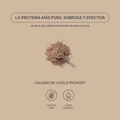 Be levels whey isolated protein is your ally to reach your goals: more protein, less fat, less carbohydrates and almost no sugar. With 90% purity and maximum absorption, it helps you maintain and increase muscle mass, accelerate post-workout recovery and support your metabolism.
